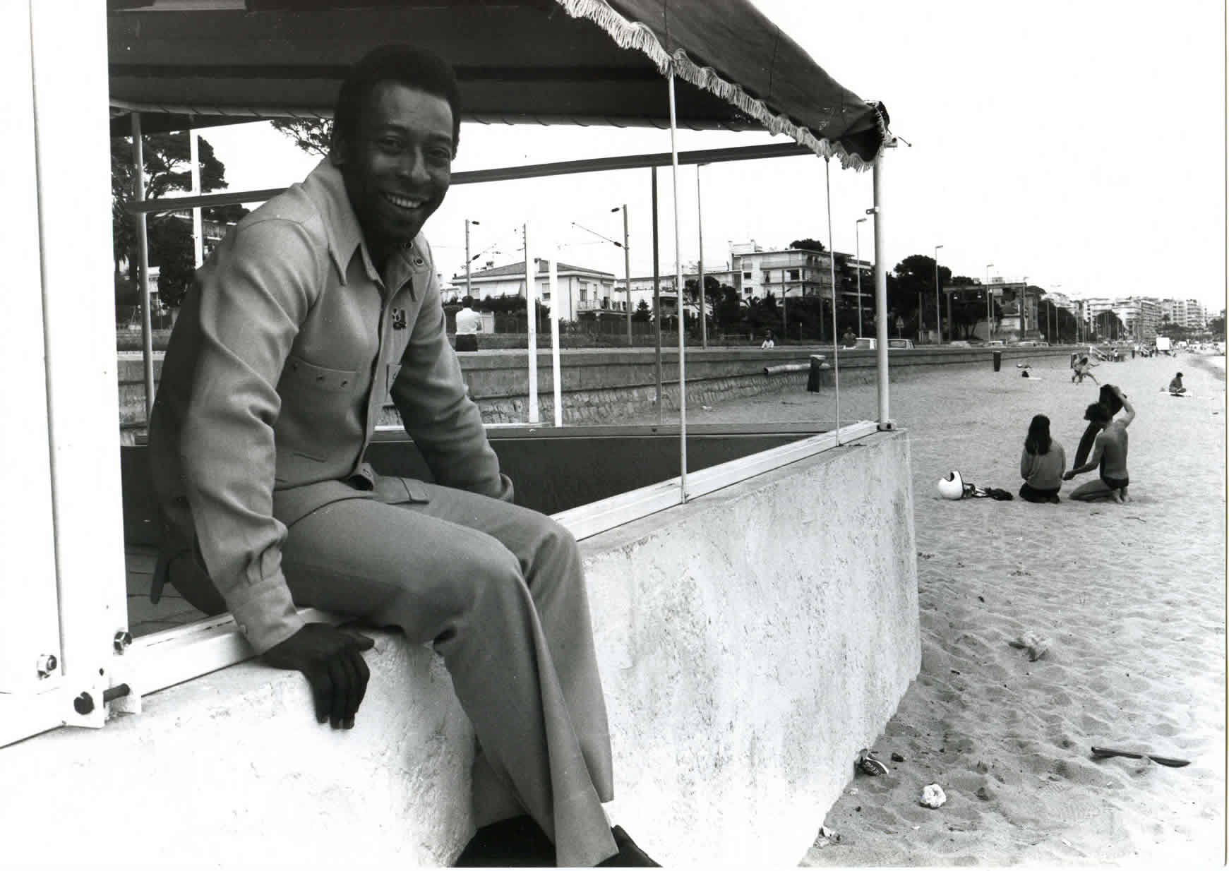 Pele on the beach at Cannes, 1981