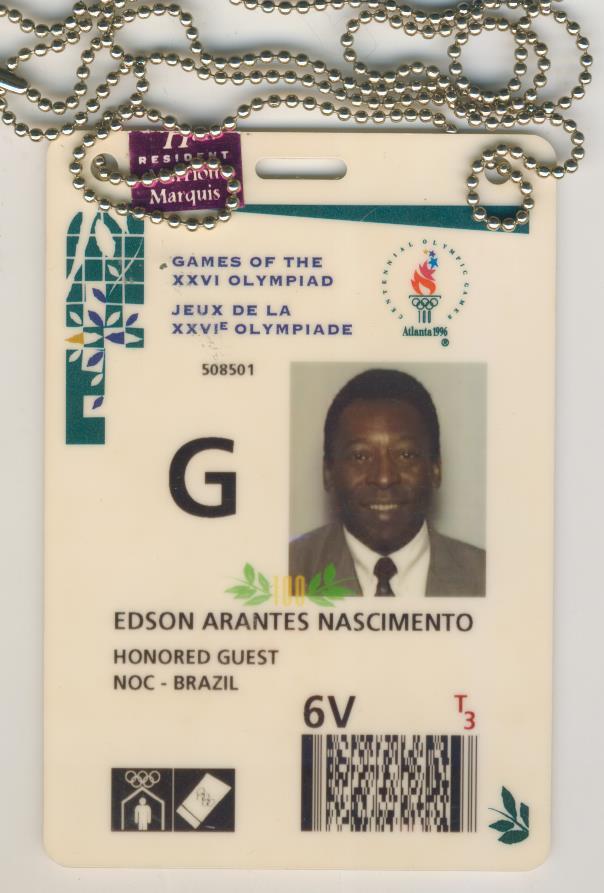 When Thomas Bach presented Pelé with his Medal of the Olympic Order he said of the Brazilian, “In everything he does, both on and off the field, he exemplifies the Olympic values of excellence, friendship and respect.” Although he may not have played in the Olympics, Pelé has been involved in the Olympic movement massively over the years. We know for a fact that he was an ‘Honored guest’ at the 1996 Atlanta Olympics, because we have recently acquired his accreditation pass for those games, a cracking piece of sports memorabilia and sport history. There he watched his great friend, Muhammad Ali, light the torch with dignity and great ceremony. It will be fitting and equally symbolic to watch the great Brazilian footballer, Edson Arantes do Nascimento, doing the same at the Opening Ceremony in Brazil 2016.