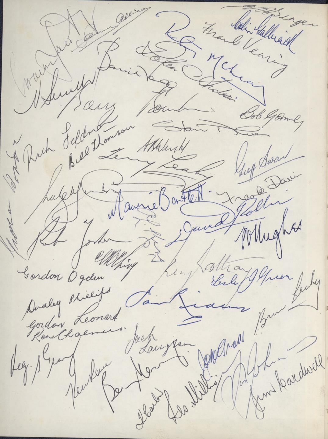 4to. 181pp. Dust-wrapper, lightly rubbed. Very good condition. Presentation book-plate made out to Captain PG Lawrence from the club laid down to fly-leaf, dated 1965. The front pastedown is signed by numerous players from the mid 1960s, including Gordon Ogden, Dudley Phillips, Jim Cardwell, Norm Smith, Barrie Vagg, Terry Leahy, Brian Leahy, Graeme Jacobs, Ian Ridley, Frank Davis and many more (at least 46 in total).
