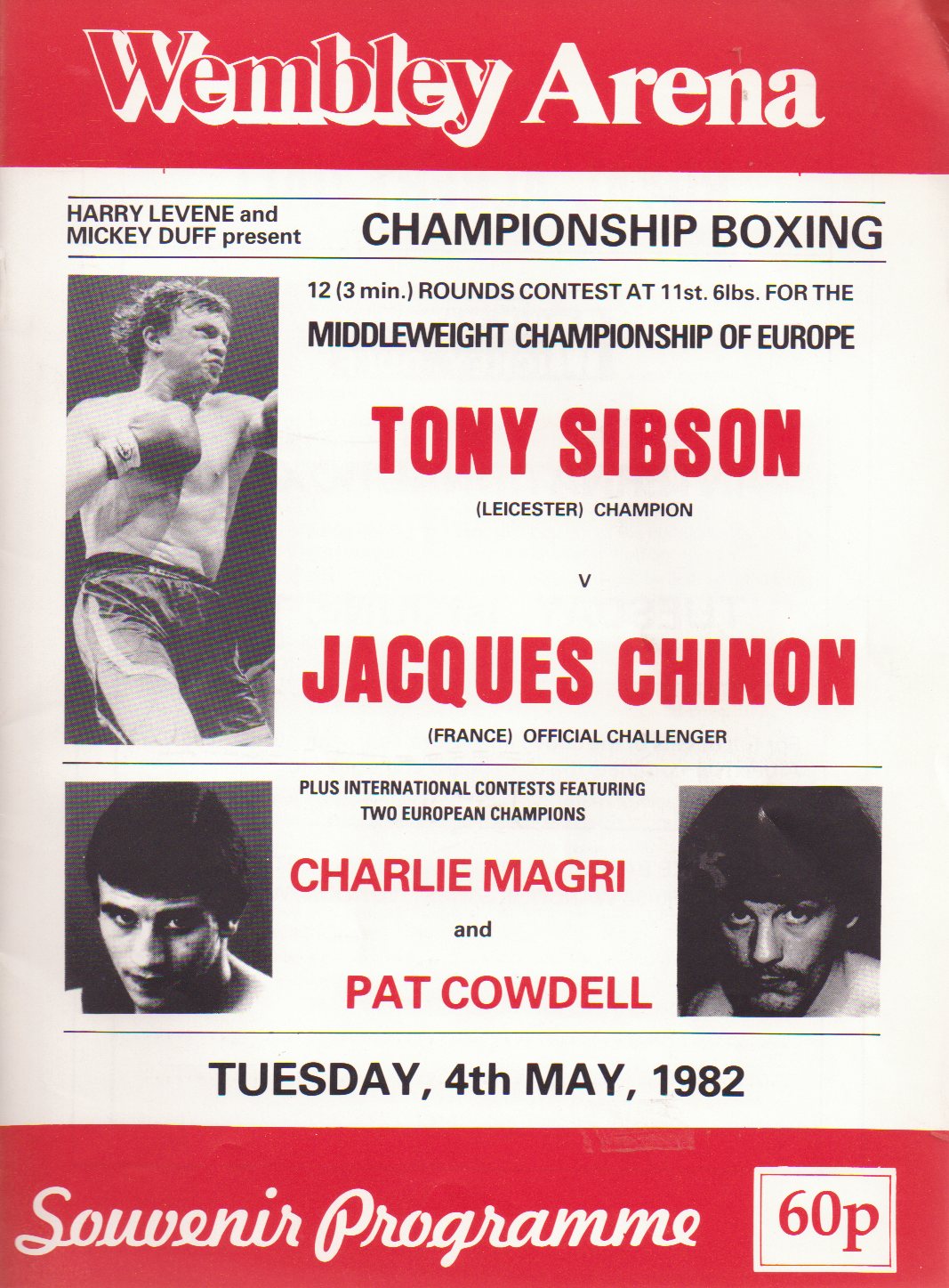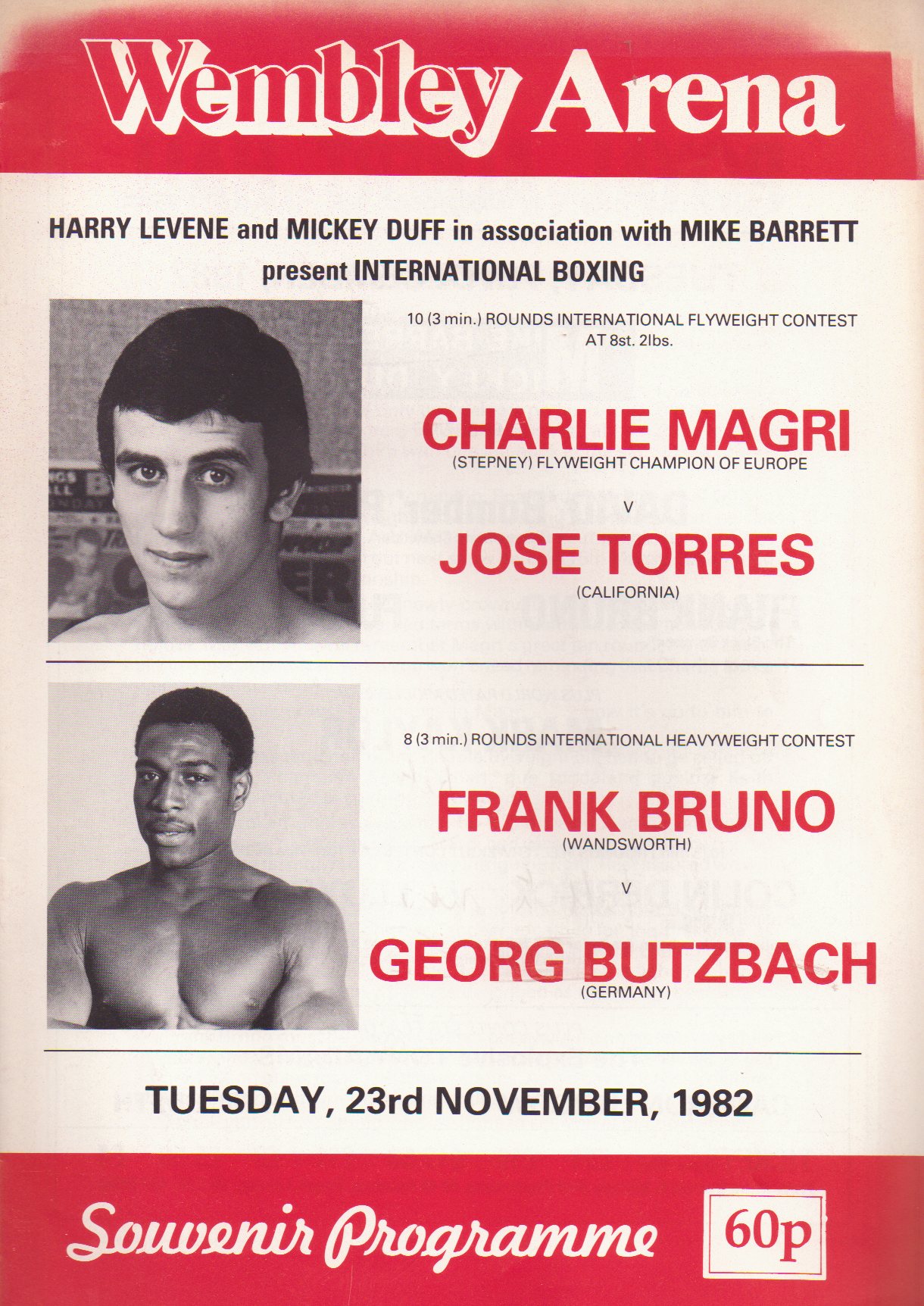 Five official boxing programmes containing the 2nd (v Steichen), 4th (v Gibbs), 5th (v Moore), 6th (v Scott) and 9th (v Butzbach) professional fights of Frank Bruno's career, from the collection of Harry Carpenter.