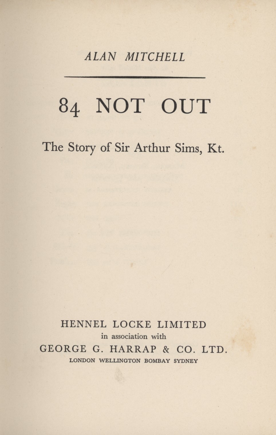 Cricket » Cricket Books » Cricket Biographies » 84 NOT OUT: THE STORY OF SIR ARTHUR SIMS, KT