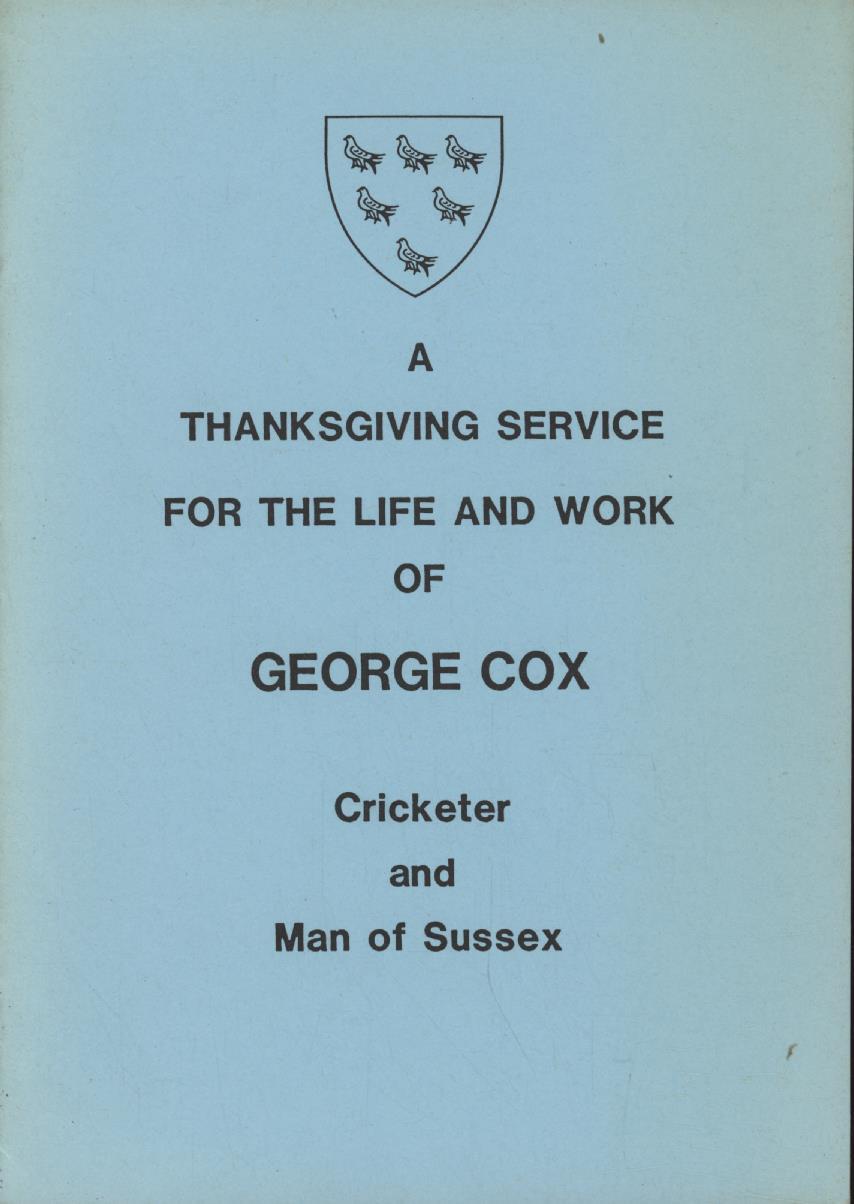 Cricket » Cricket Memorabilia » General Cricket » A THANKSGIVING SERVICE FOR THE LIFE AND WORK OF GEORGE COX - CRICKETER AND MAN OF SUSSEX