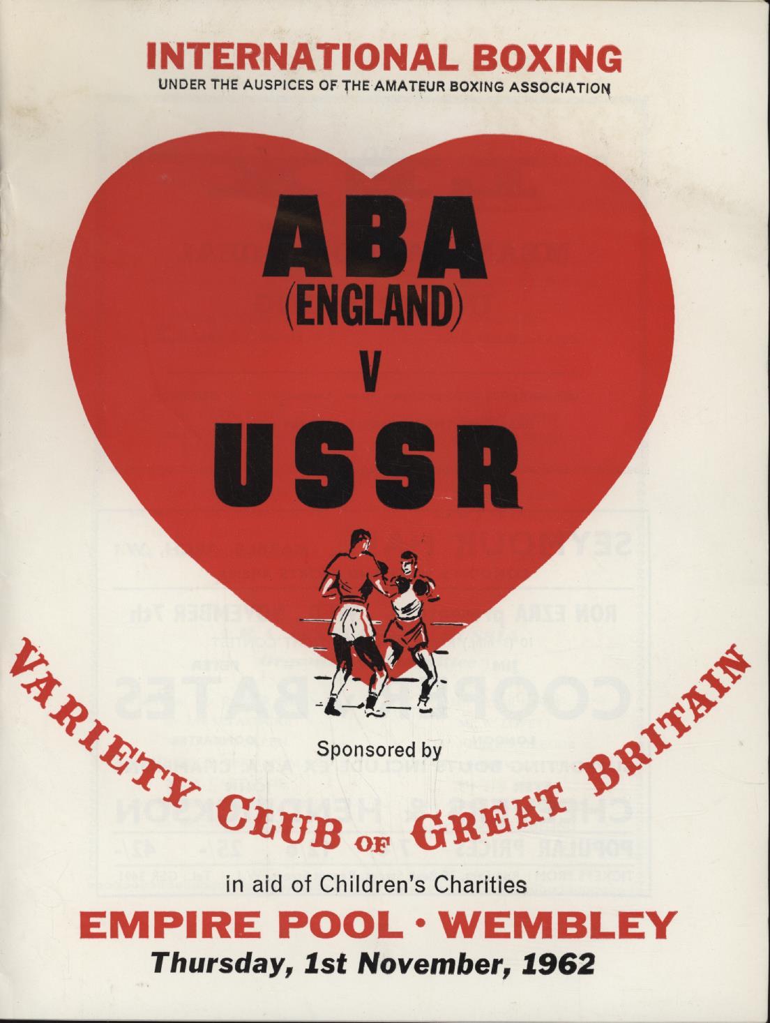 ABA (ENGLAND) V USSR (AMATEUR BOXING) 1962 BOXING PROGRAMME