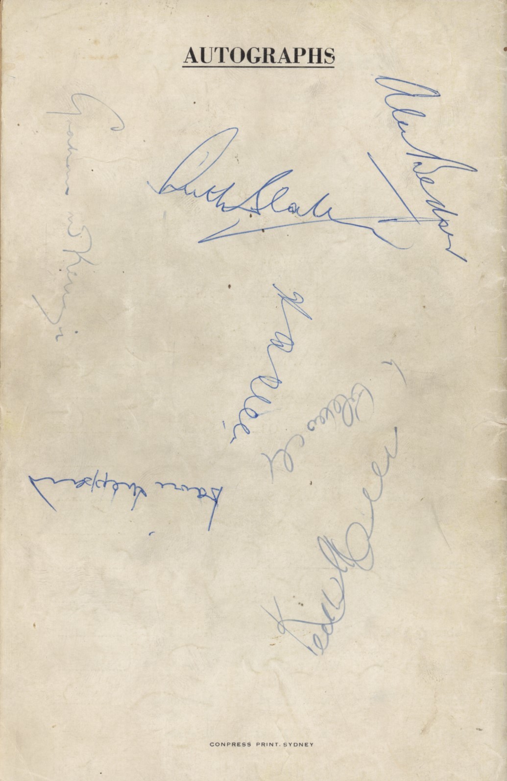 Paperback. 8vo. 64pp. Illustrated covers, rubbed. Good condition. Signed to the back cover in ink by Alec Bedser,  Allen, Coldwell, Sheppard, Keith Miller, Graham McKenzie and one other.