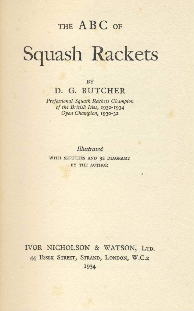 The author was professional squash rackets champion of the British Isles 1930-34; Open Champion 1930 -32.