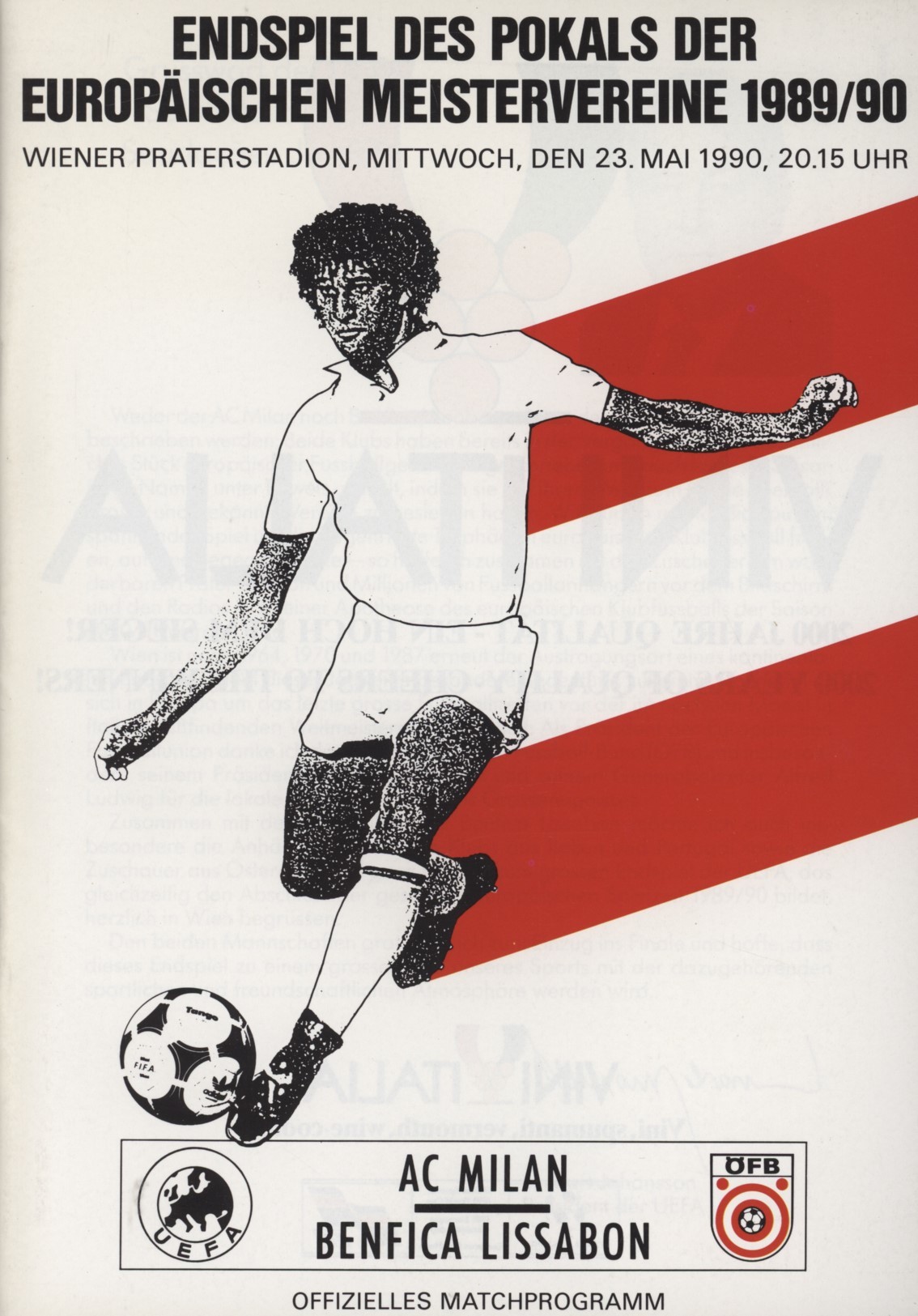 Official programme for the European Cup Final between Benfica and AC Milan, played in Vienna, 23rd May 1990.