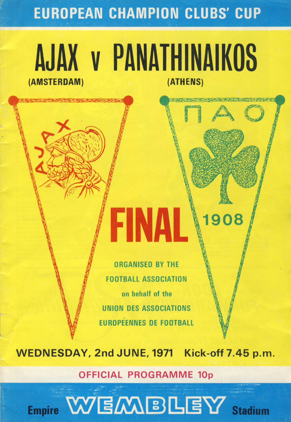 Official programme for the European Cup Final played at Wembley, 2nd June 1971.