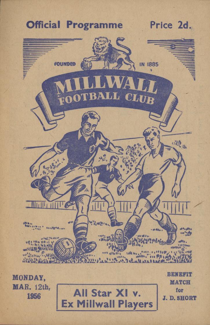 Football » Football Programmes » Testimonial & Charity Matches » ALL STAR XI V EX MILLWALL PLAYERS (J.D. SHORT BENEFIT) 1955-56 FOOTBALL PROGRAMME