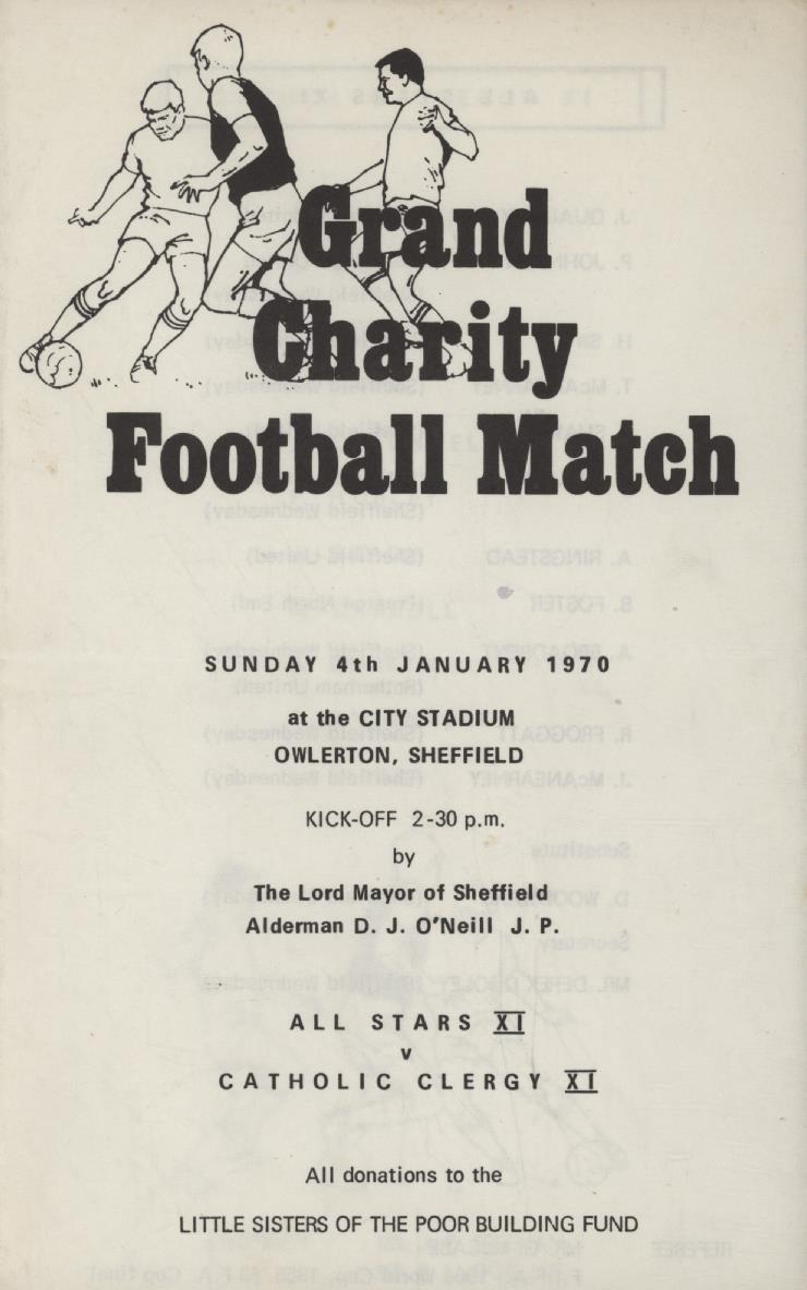 ALL STARS XI (SHEFFIELD) V CATHOLIC CLERGY XI (CHARITY MATCH) 1969-70 FOOTBALL PROGRAMME