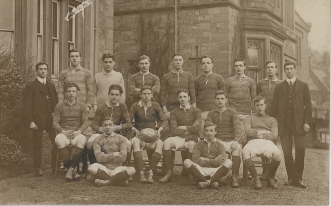 AMPLEFORTH SCHOOL 1909-10 RUGBY POSTCARD (ST. BEDE
