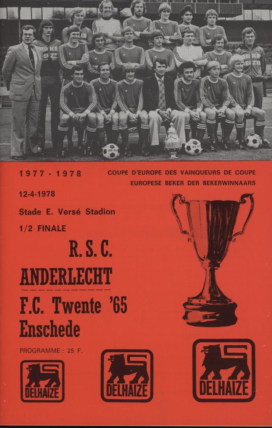 ANDERLECHT V FC TWENTE (ECWC SEMI FINAL) 1977-78 FOOTBALL PROGRAMME