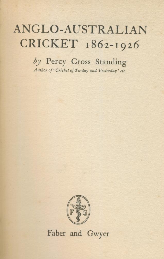 Cricket » Cricket Books » Cricket Reference » ANGLO-AUSTRALIAN CRICKET 1862-1926