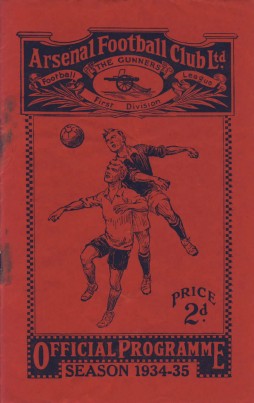 Football programme for the Division 1 match between Arsenal and Aston Villa at Highbury, season 1934/35, the season they won the League title for the third consecutive time.