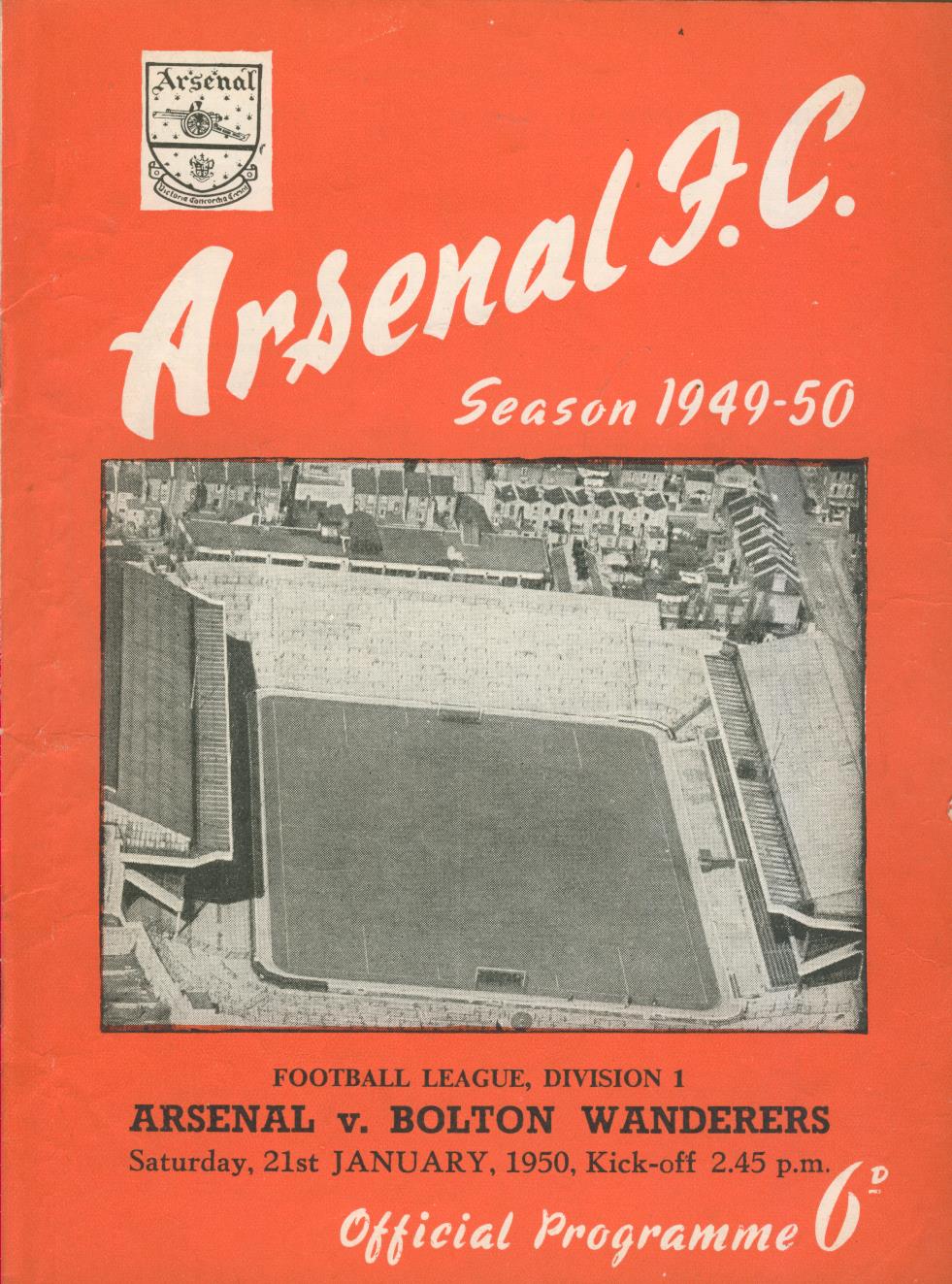 Official football match programme for the match played at Highbury on Janusry 21st 1950.