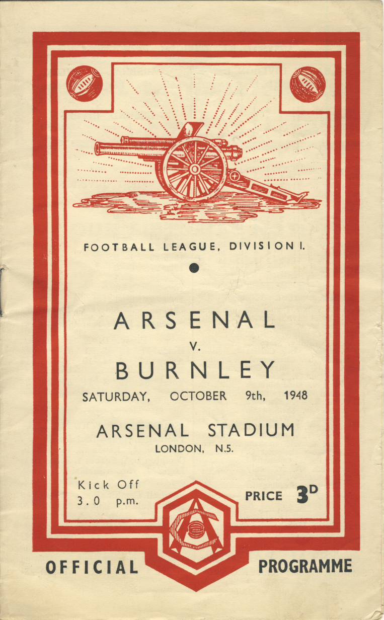 Football programme for the Division 1 match between Arsenal and Burnley at Highbury, season 1948/49.