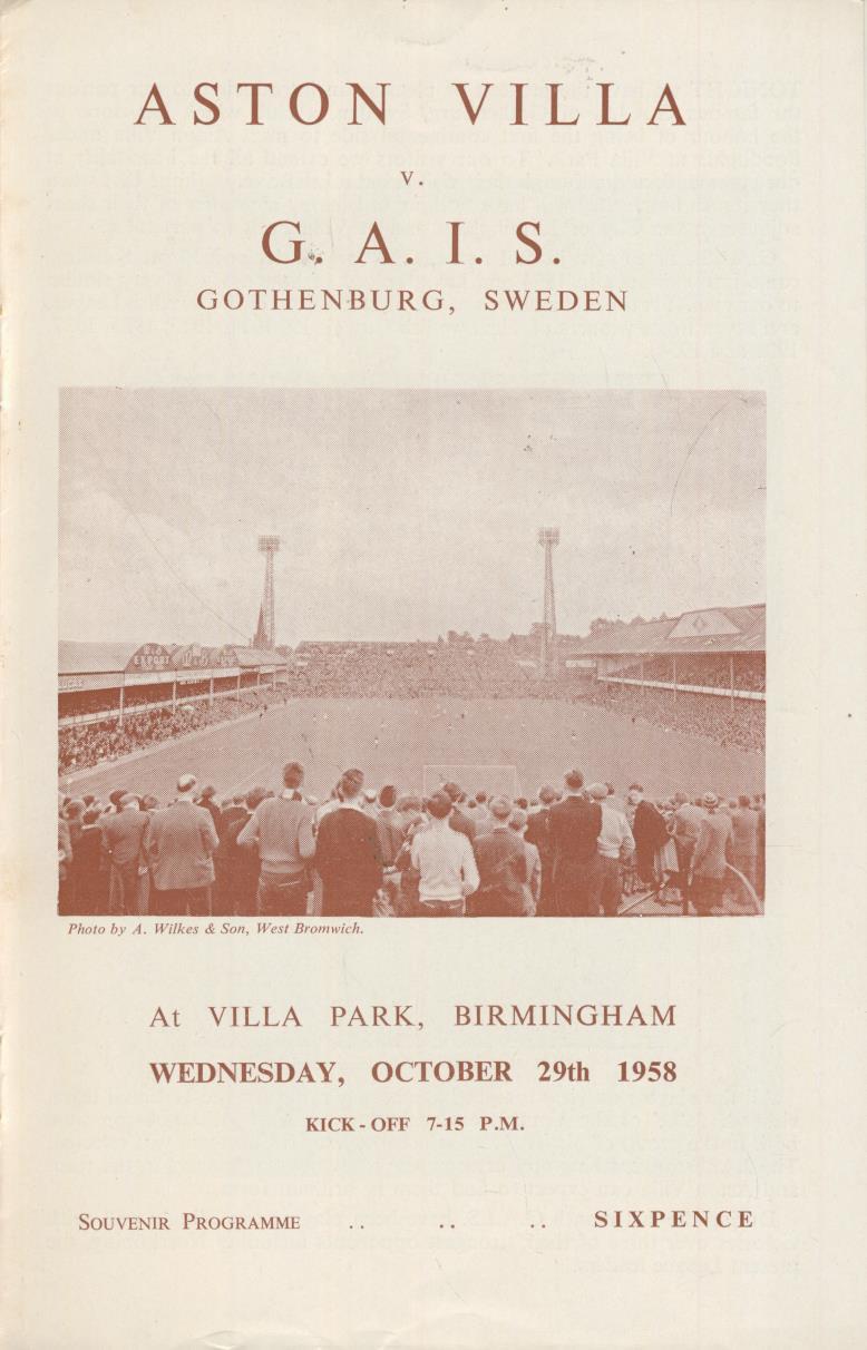 ASTON VILLA V GAIS (GOTHENBURG) 1958-59 FOOTBALL PROGRAMME