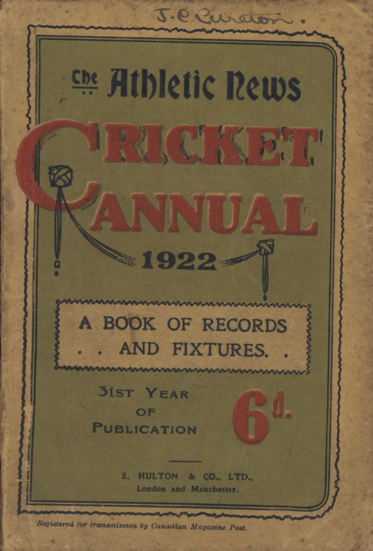 ATHLETIC NEWS CRICKET ANNUAL 1922
