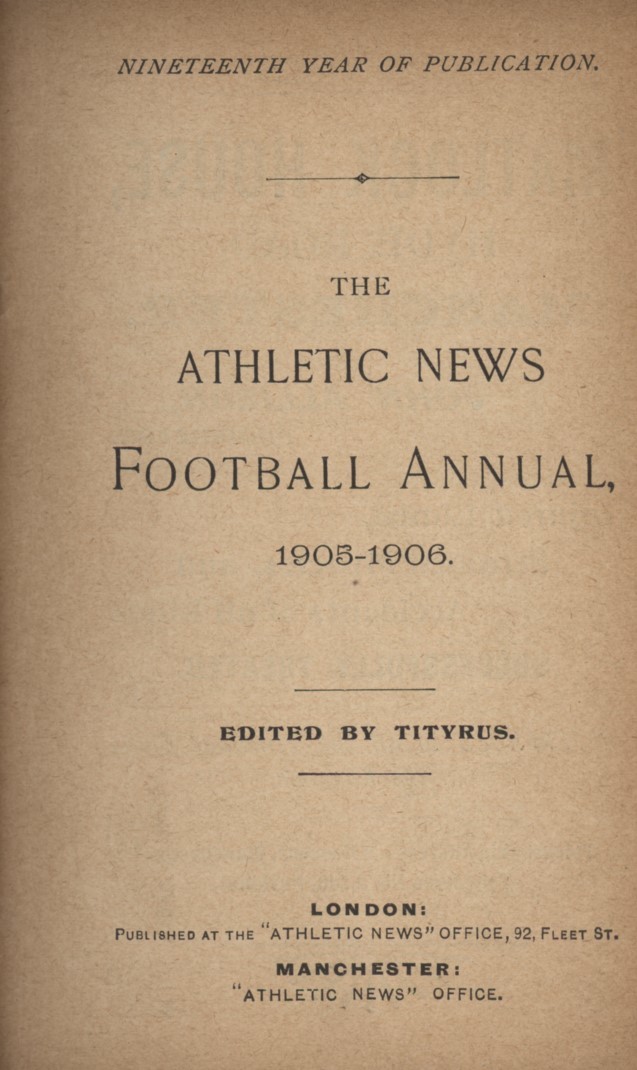 Football » Football Books » Athletic News Football Annuals » ATHLETIC NEWS FOOTBALL ANNUAL 1905-1906