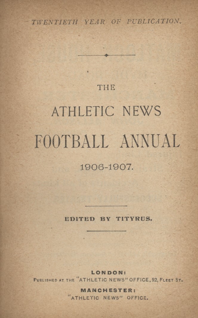 Football » Football Books » Athletic News Football Annuals » ATHLETIC NEWS FOOTBALL ANNUAL 1906-1907