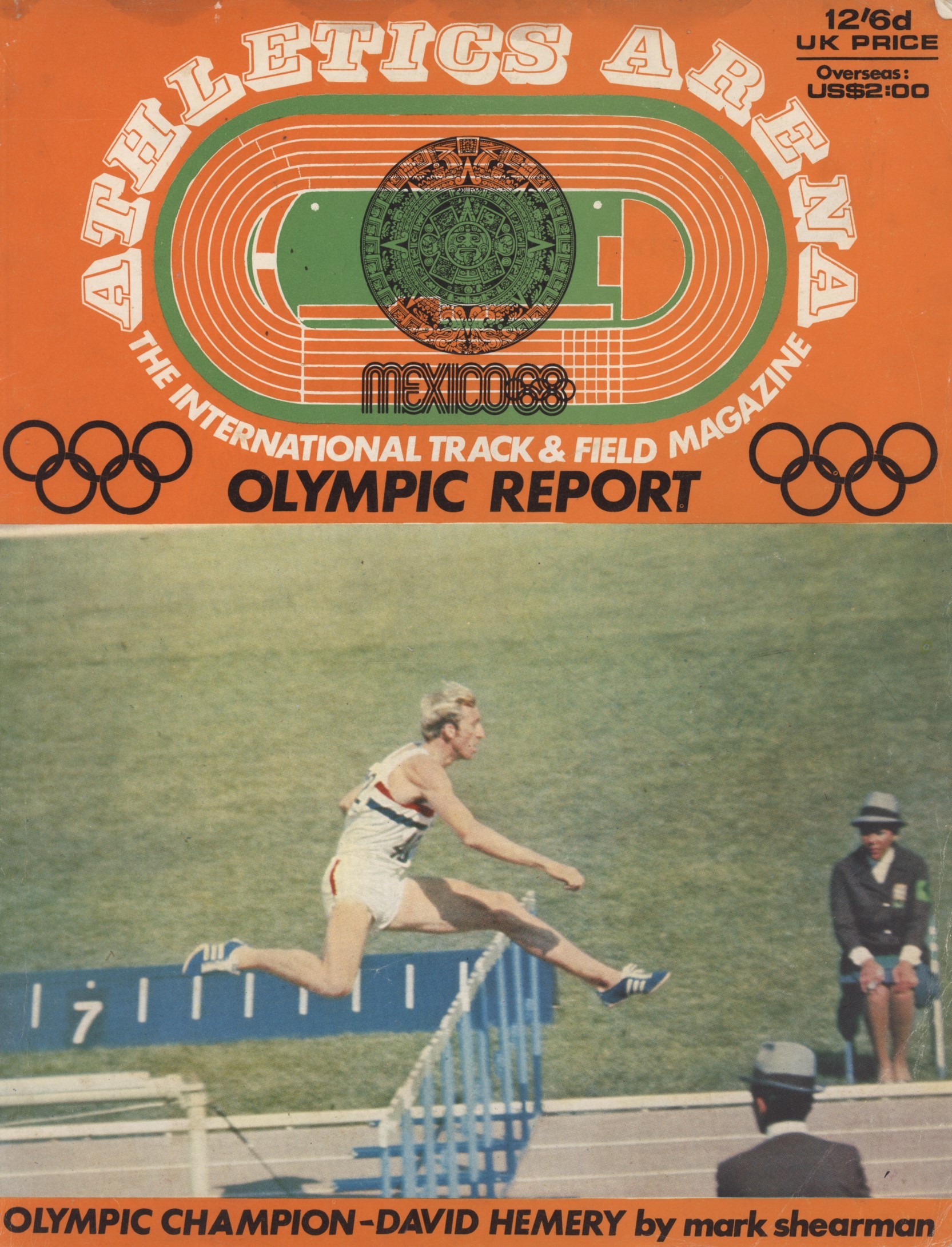 The athletics magazine's detailed account of the Mexico Games of 1968, with extensive reports, results and interviews, profusely illustrated throughout, including action shots of cover-boy and gold medalist David Hemery.