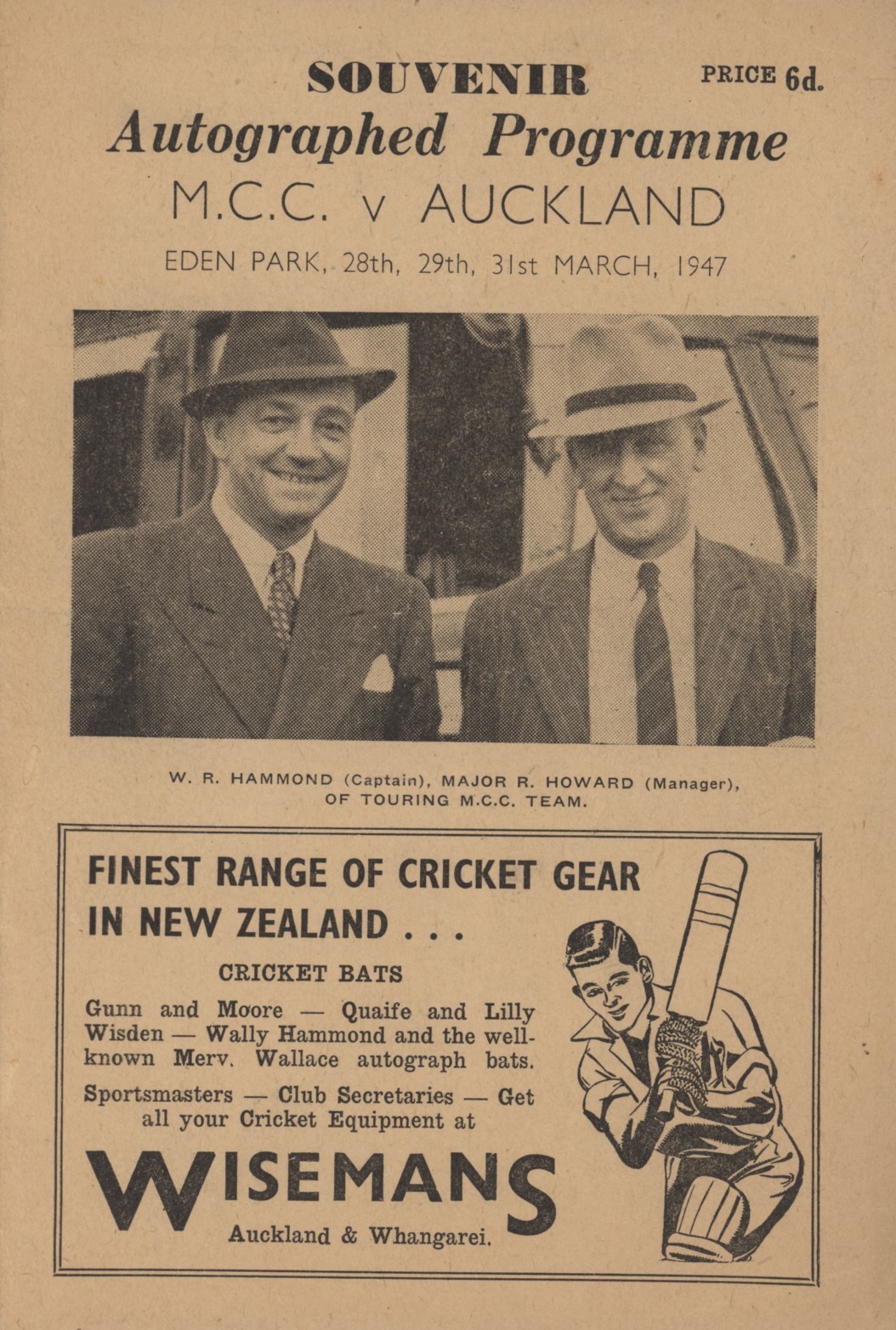 AUCKLAND V ENGLAND 1947 (EDEN PARK) CRICKET PROGRAMME