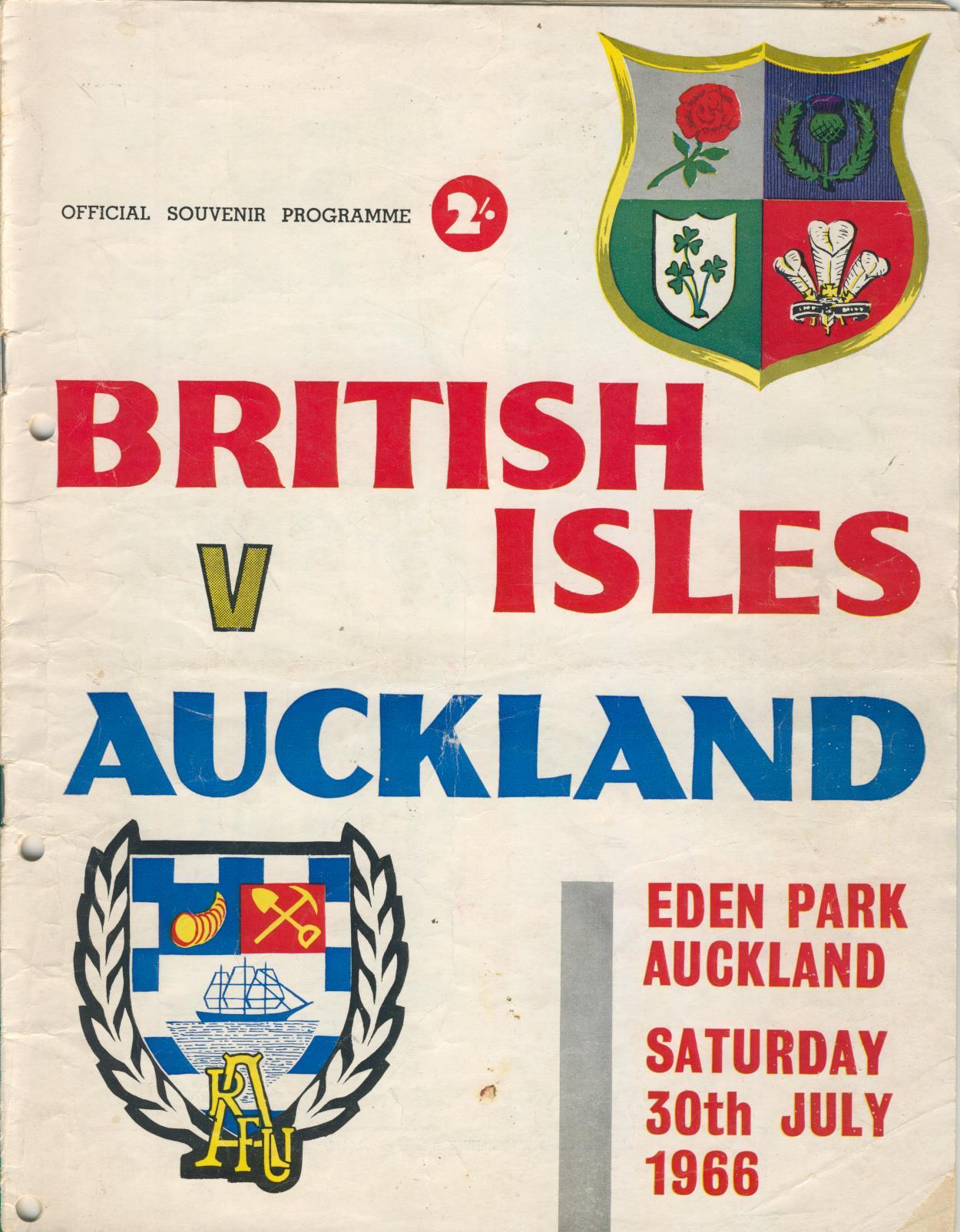 Rugby Union » Rugby Union Programmes » British & Irish Lions » AUCKLAND V BRITISH ISLES 1966 RUGBY PROGRAMME