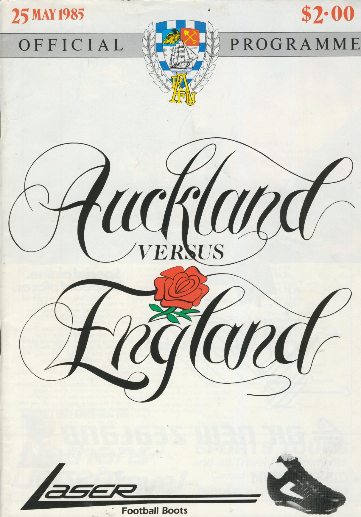 AUCKLAND V ENGLAND 1985 RUGBY PROGRAMME