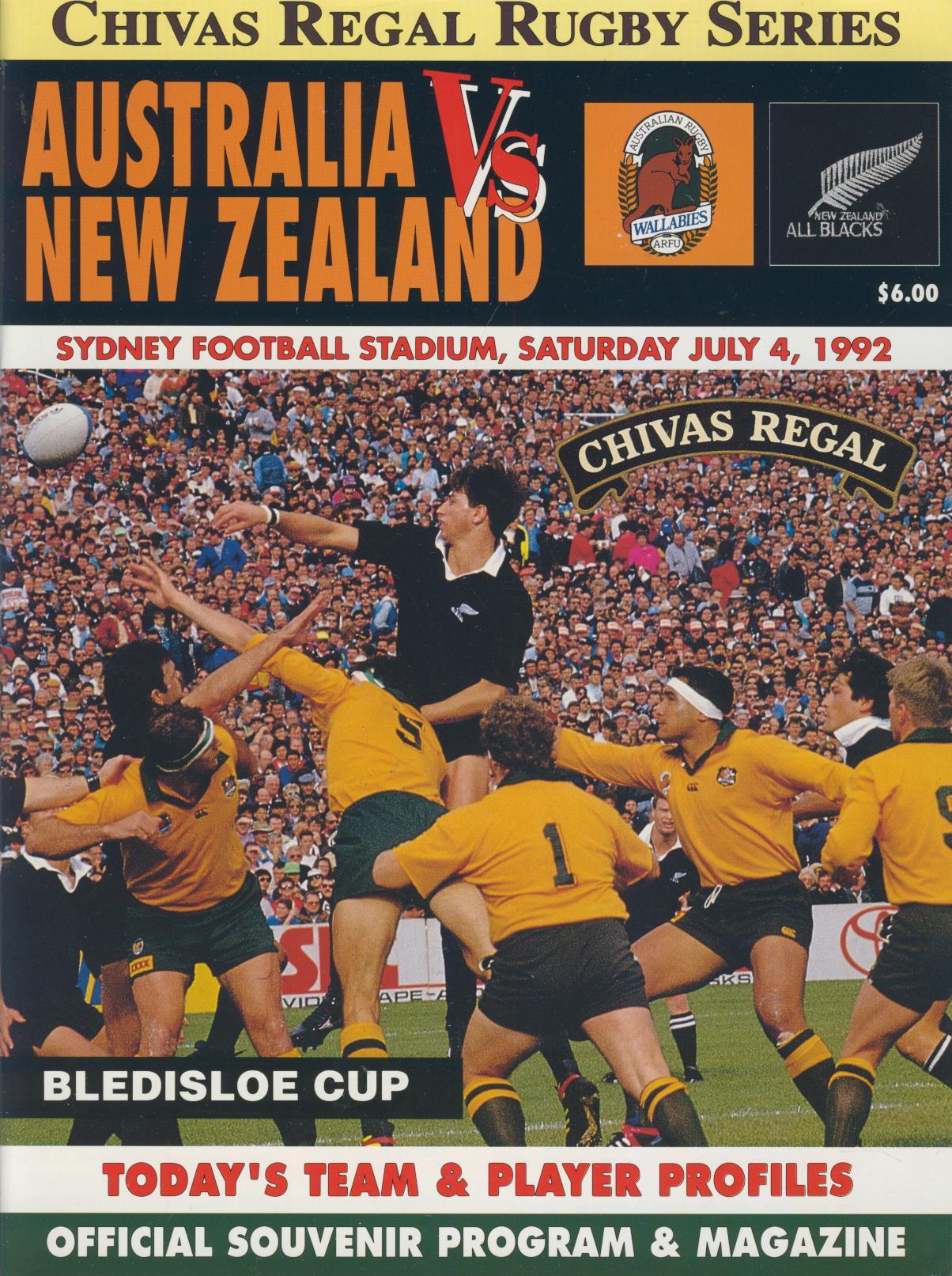 AUSTRALIA V NEW ZEALAND 1992 RUGBY PROGRAMME