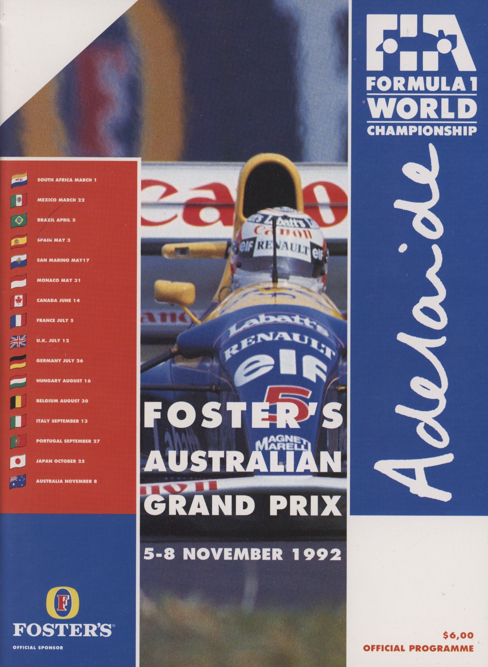 AUSTRALIAN GRAND PRIX 1992 MOTOR RACING PROGRAMME