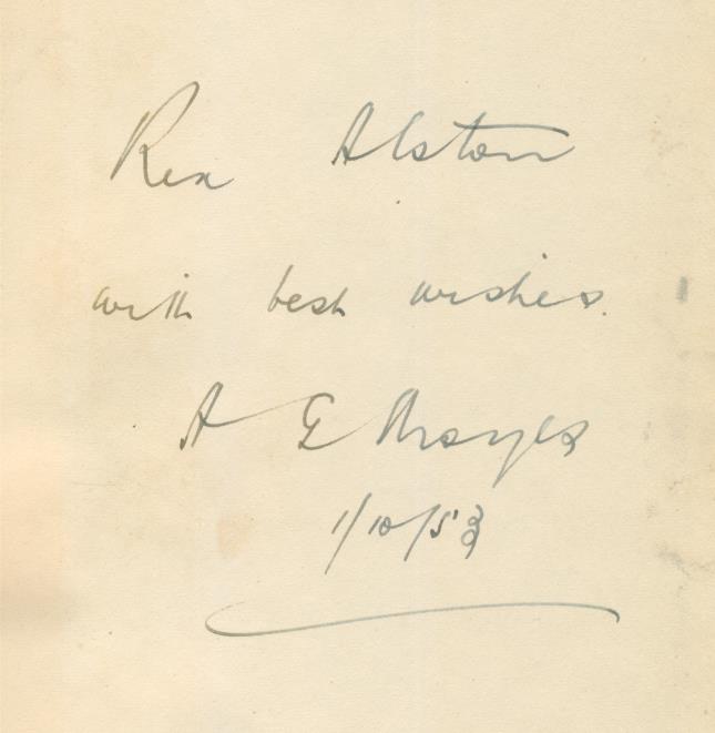 8vo. 192pp. 12 pages of photographs. Dust wrapper price-clipped with minor edge wear, otherwise good. Original green cloth boards. Signed presentation copy from the author to the distinguished cricket broadcaster, Rex Alston.