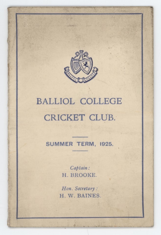 Small fixture card for Balliol College (Oxford) Cricket Club for 1925. The card comes from the personal collection of Henry Brooke, later Baron Brooke of Cumnor and Conservative Home Secrerary from 1962-64, and he is listed on the front as the club captain.