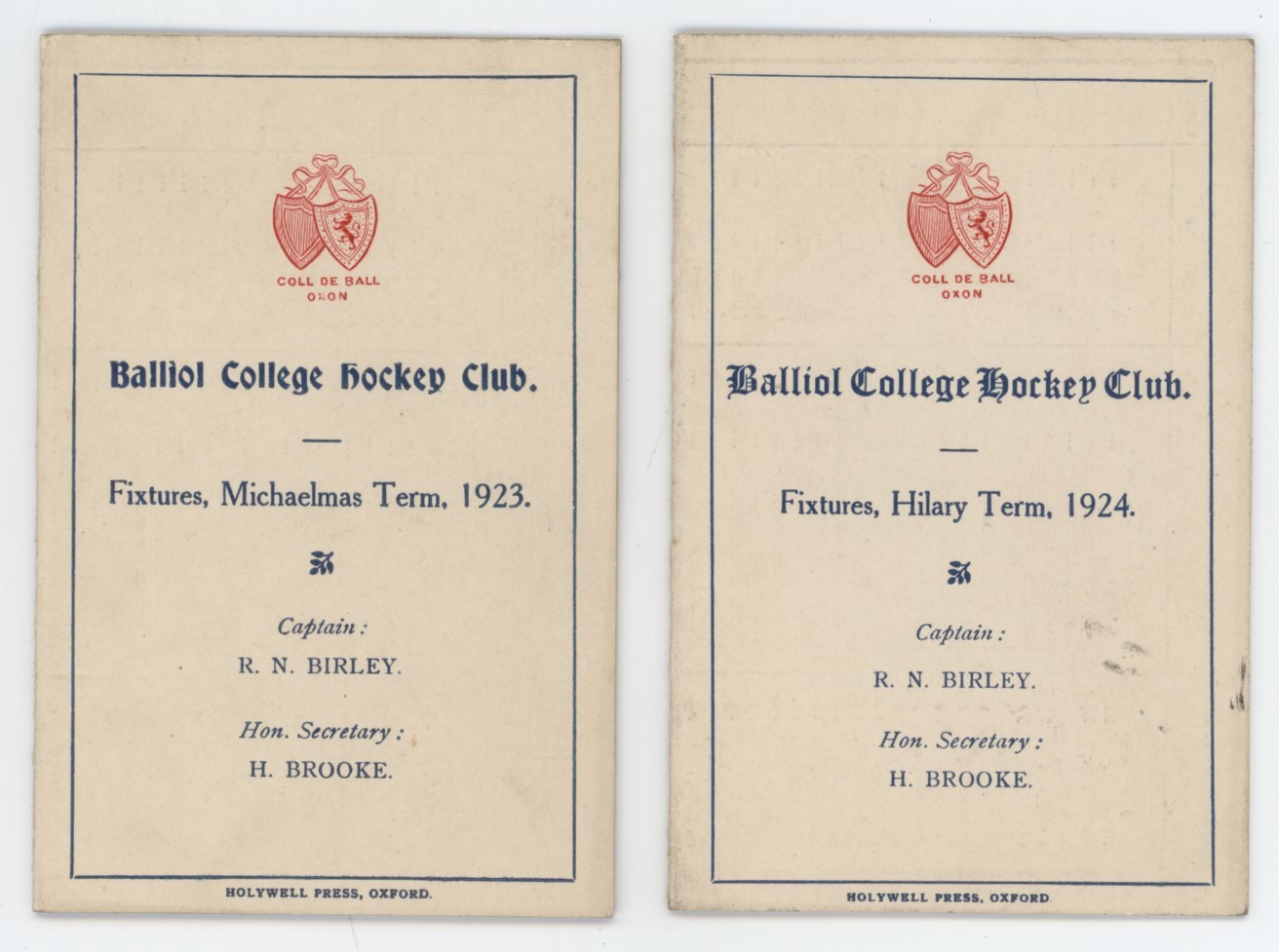Other Sports » Hockey » Hockey Memorabilia » General » BALLIOL COLLEGE HOCKEY CLUB FIXTURE CARDS 1923 & 1924 - THE PROPERTY OF HENRY BROOKE