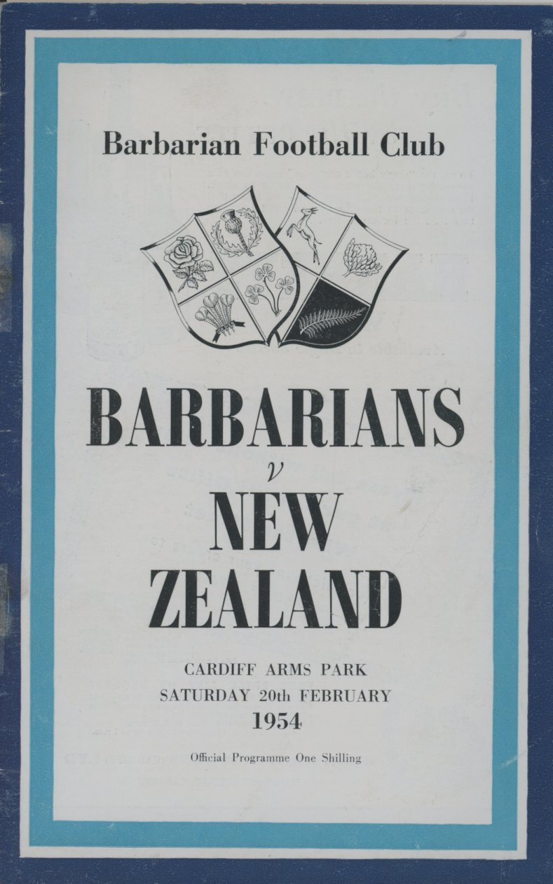 Official rugby programme for Barbarians v New Zealand at Cardiff Arms Park on February 20 1954.