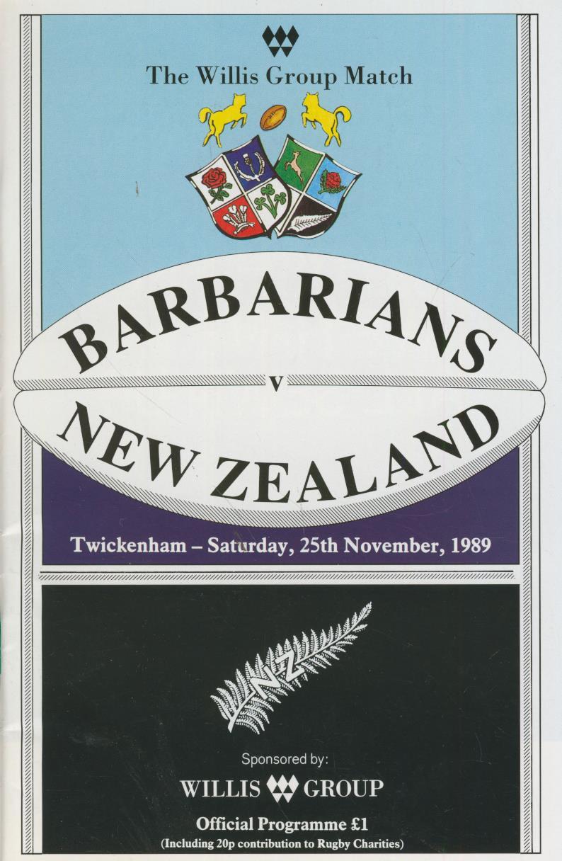 BARBARIANS V NEW ZEALAND 1989 RUGBY PROGRAMME