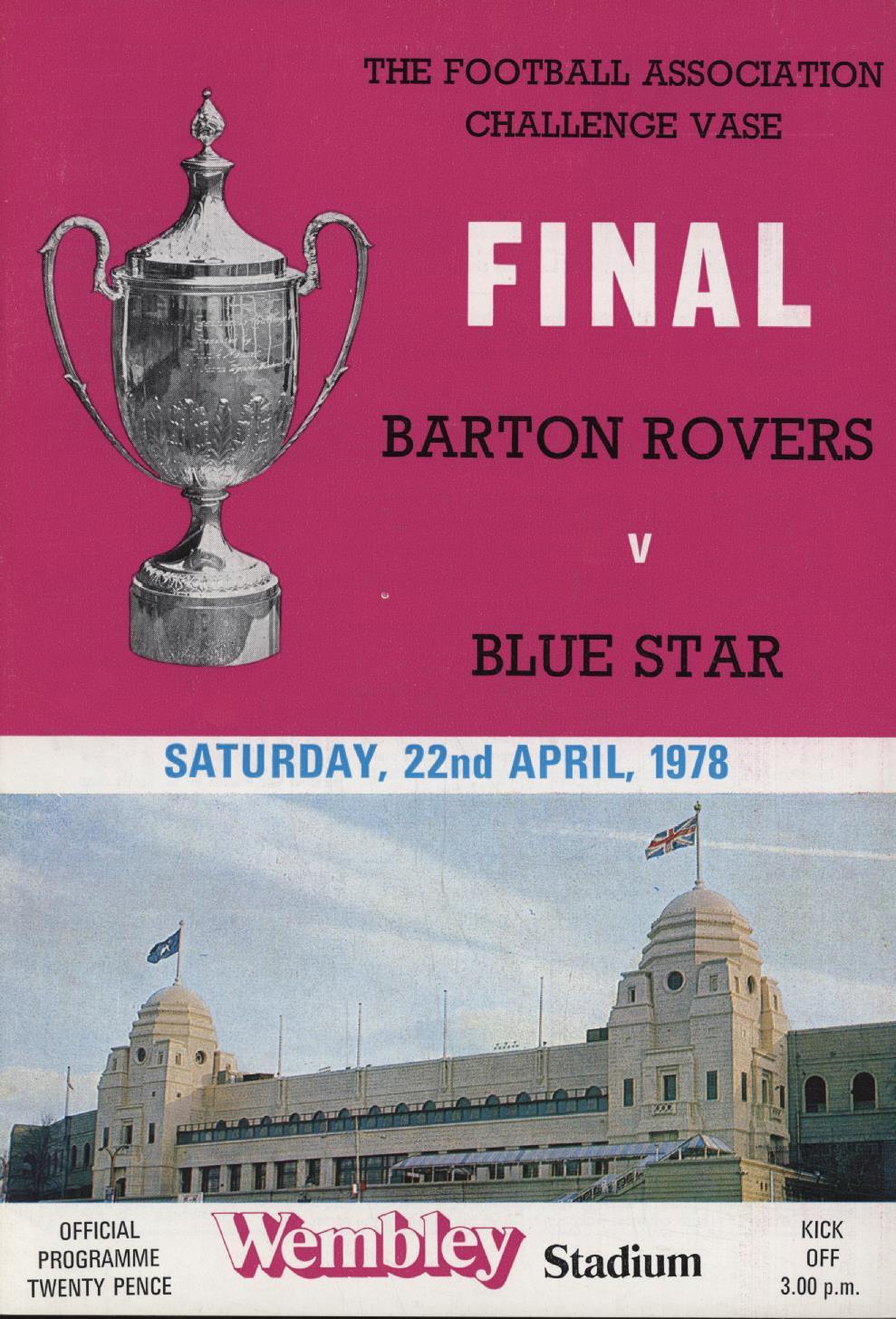 BARTON ROVERS V BLUE STAR 1978 (F.A. CHALLENGE VASE FINAL) FOOTBALL PROGRAMME