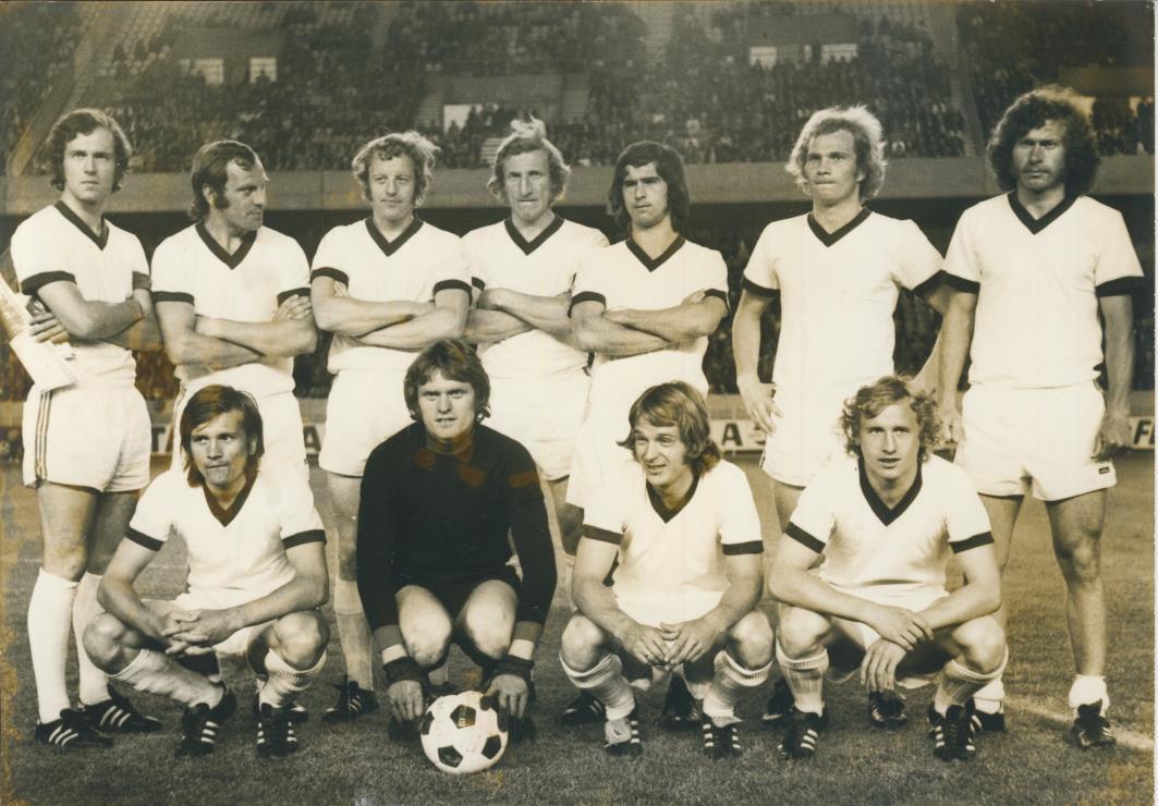 Original Press photograph of the Bayern Munich team that lost to Feyenoord in the final of the Tournoi de Paris on June 6th 1973. Includes Beckenbauer and Muller.
