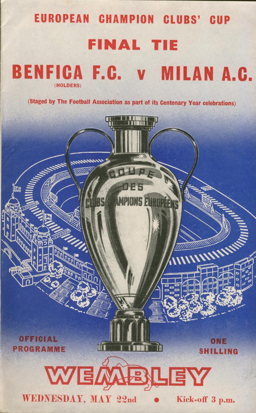 Official programme for the European Cup Final between Benfica and AC Milan, played at Wembley, 22nd May 1963.