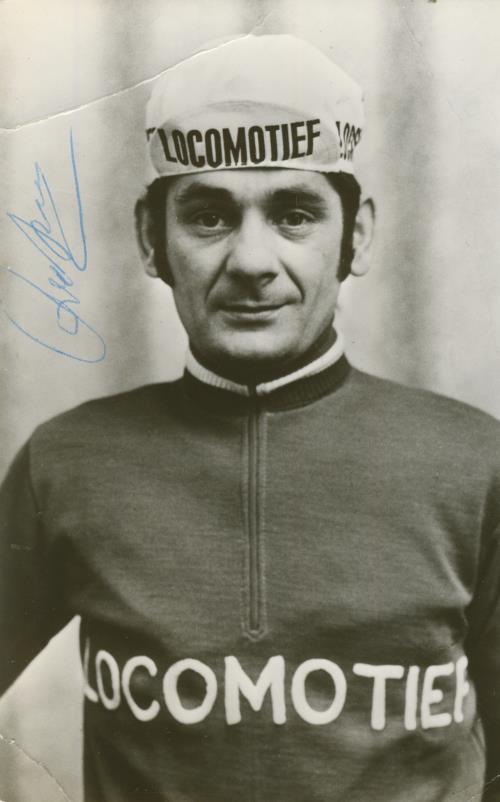 B/w postcard of the Dutch cyclist of the 1970s, Bert Boom.