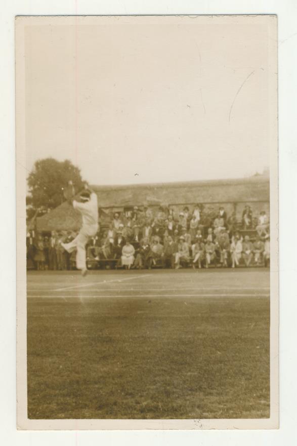 Tennis postcard. Real photographic image of Hira-Lal Soni, who played for India in the 1928 Davis Cup, during a match at Sidmouth in 1930. Postally unused. Caption written neatly in ink to reverse. Very good condition.