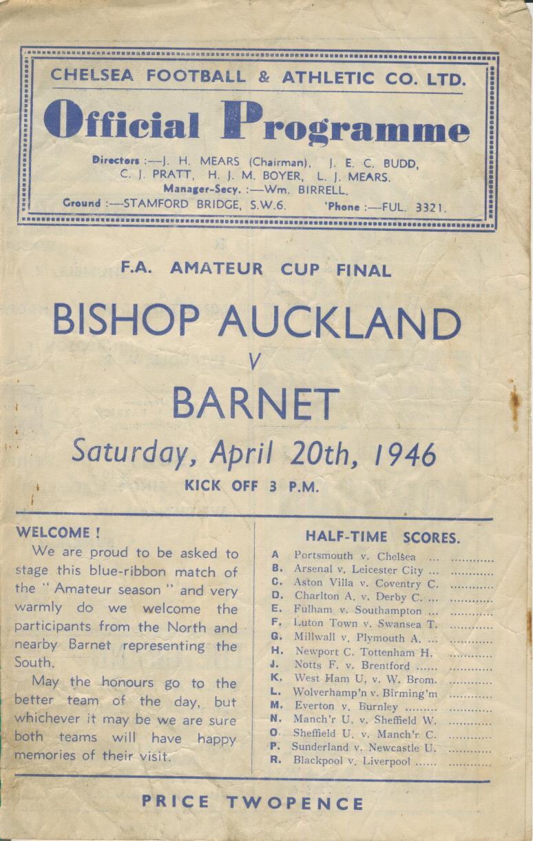 BISHOP AUCKLAND V BARNET 1946 (F.A. AMATEUR CUP FINAL) FOOTBALL PROGRAMME