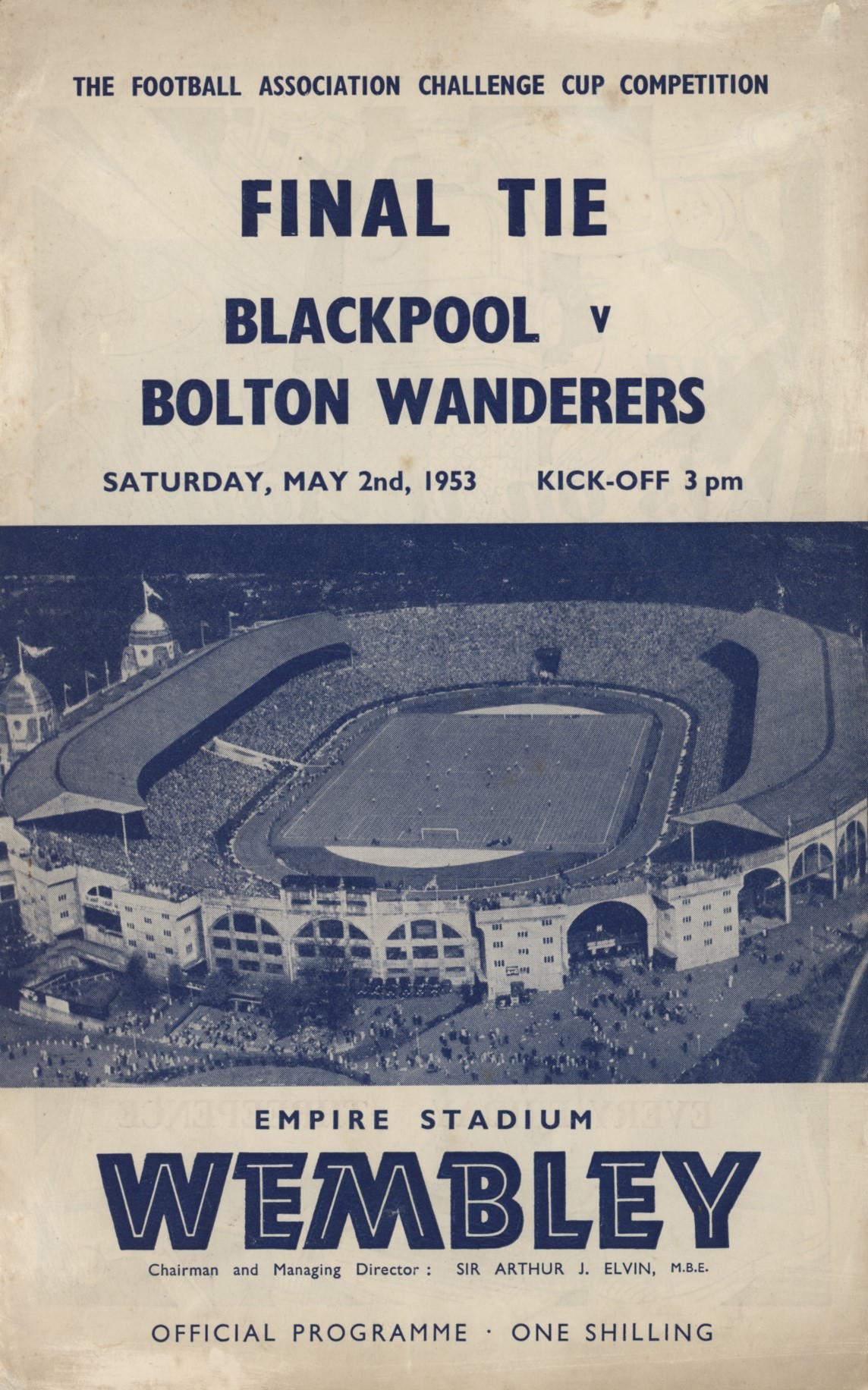 Official programme for the 1953 FA Cup Final between Blackpool and Bolton Wanderers In perhaps the greatest of all Cup Finals, Blackpool came back from 3-1 down to win 4-3. Mortensen scored a hat-trick, but, for sentiment and his inspiration, it remains the "Matthews Cup Final".