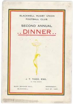 BLACKWELL RUFC 1925 RUGBY MENU CARD
