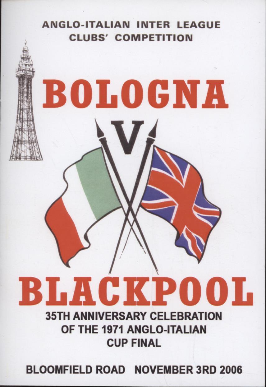 Football » Football Memorabilia » Menus & Cards » BLACKPOOL V BOLOGNA (35TH ANNIVERSARY OF 1971 ANGLO-ITALIAN CUP FINAL) 2006 DINNER MENU