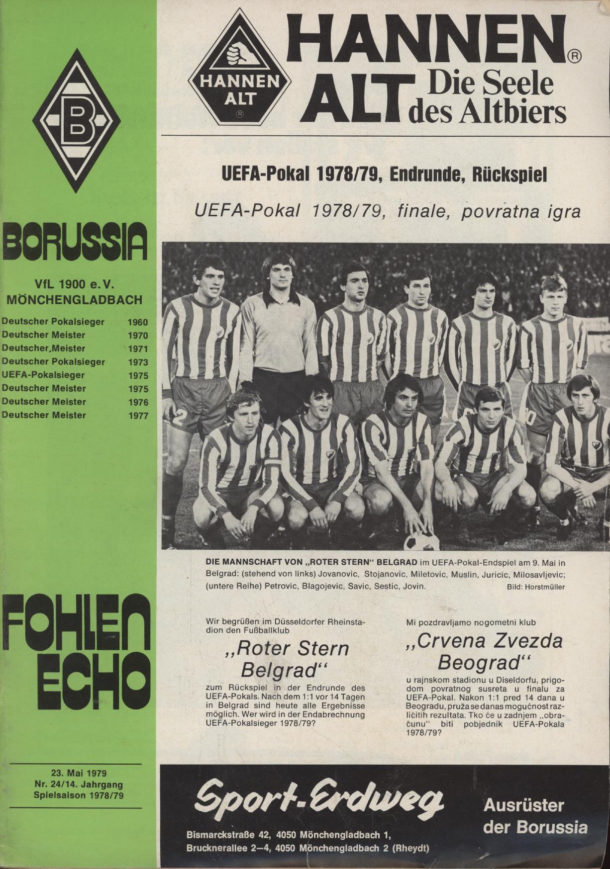 BORUSSIA MONCHENGLADBACH V RED STAR BELGRADE 1978-79 (UEFA CUP FINAL 2ND LEG) FOOTBALL PROGRAMME