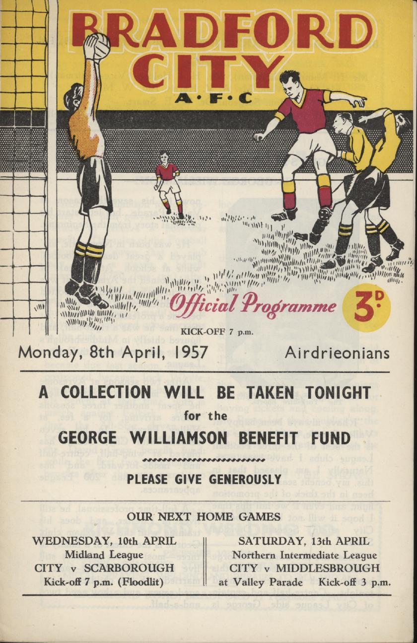 BRADFORD CITY V AIRDRIEONIANS (GEORGE WILLIAMSON BENEFIT) 1957 FOOTBALL PROGRAMME