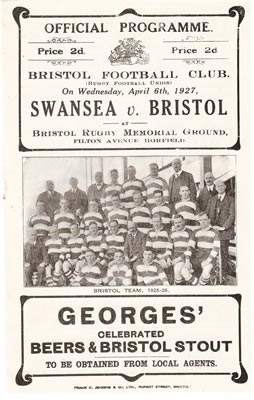Official programme for the match played at the Memorial Gound, Bristol, on April 6 1927.