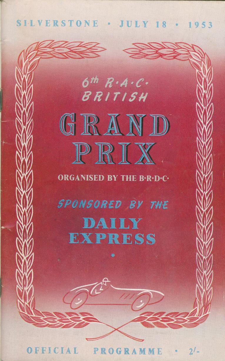 Official programme for the British Grand Prix held at Silverstone, 18th July 1953. The race was won by the Italian driver, Alberto Ascari in a Ferrari, who duly went on to retain the Formula One World Championship. Fangio was second, Farina third.
