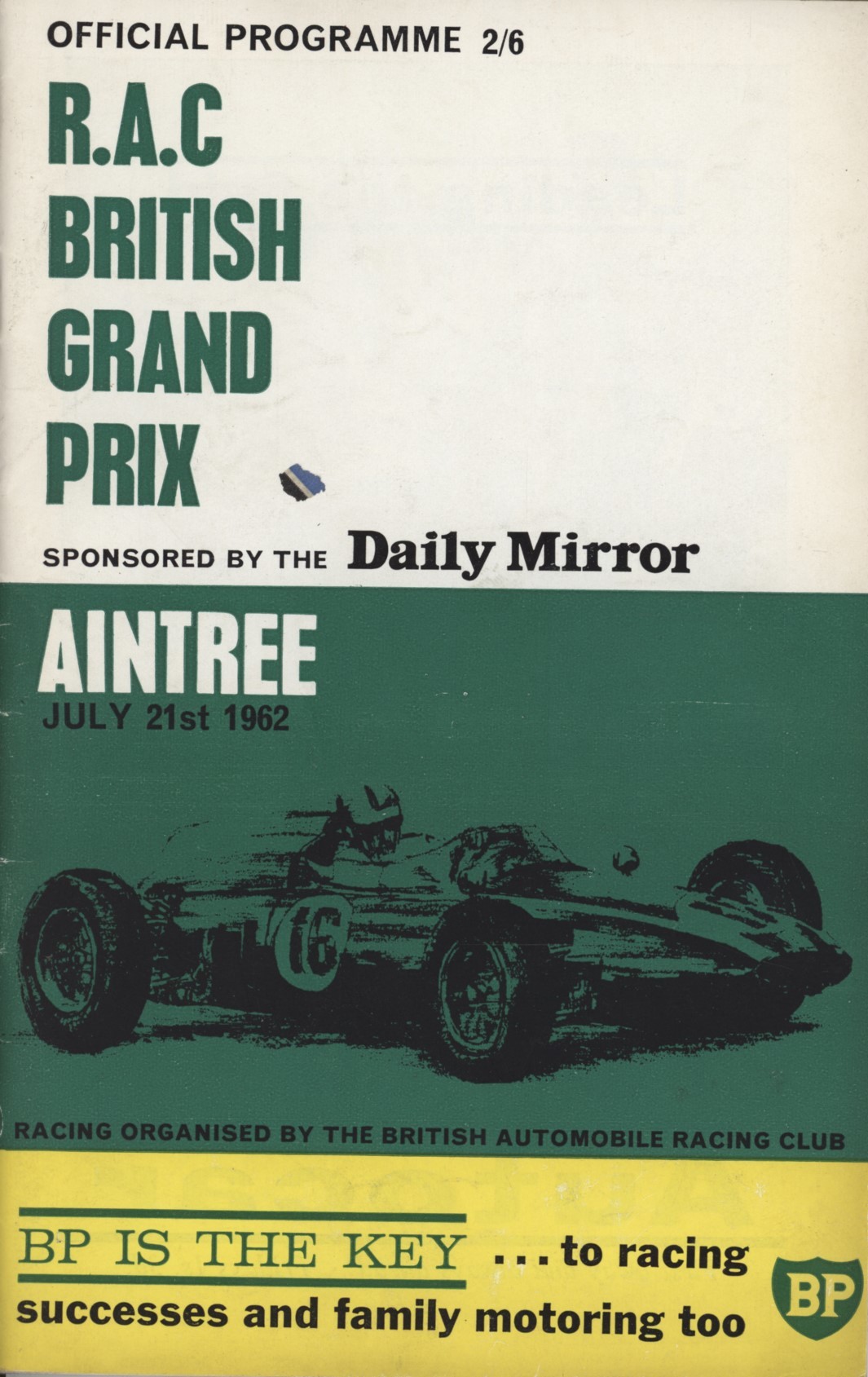 BRITISH GRAND PRIX 1962 (AINTREE) MOTOR RACING PROGRAMME