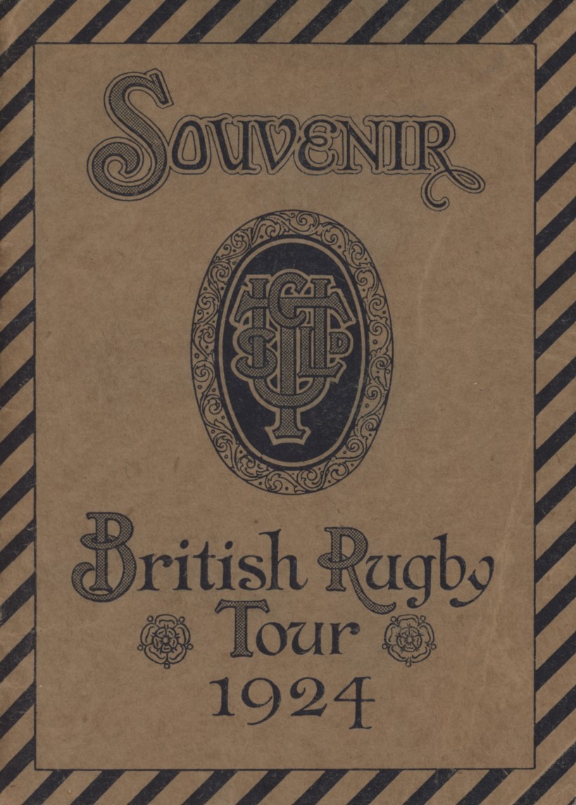 Rugby tour brochure published by the United Tobacco Companies Ltd., Cape Town, to accompany the 1924 British Lions tour to South Africa. Contains photographic and pen portraits of all the tourists and many prominent South African players. Also contains details of previous Lions and Springbok tours, back to 1891. The tourists won 9 matches but lost three Tests and drew one.
