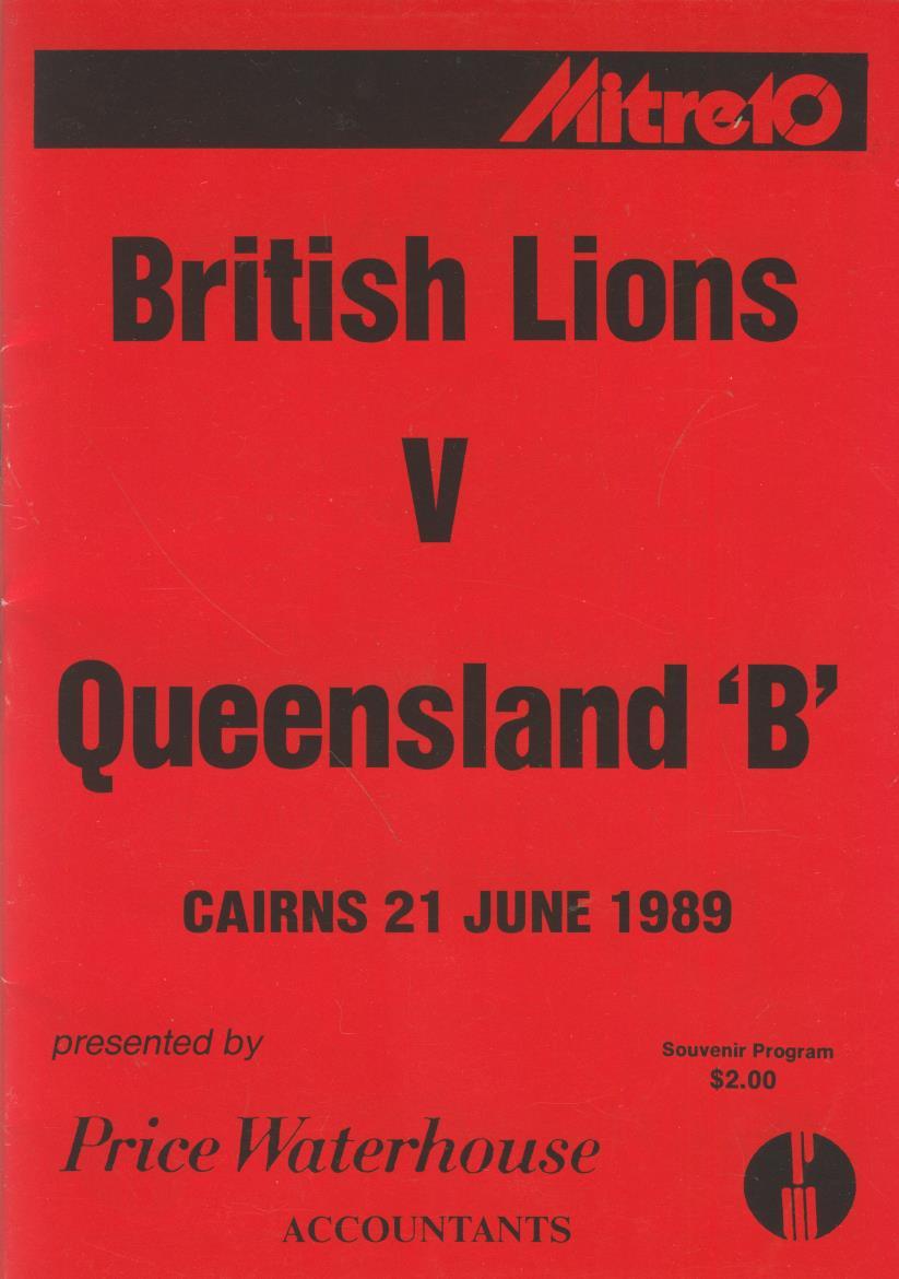 BRITISH LIONS V QUEENSLAND 'B' 1989 RUGBY PROGRAMME